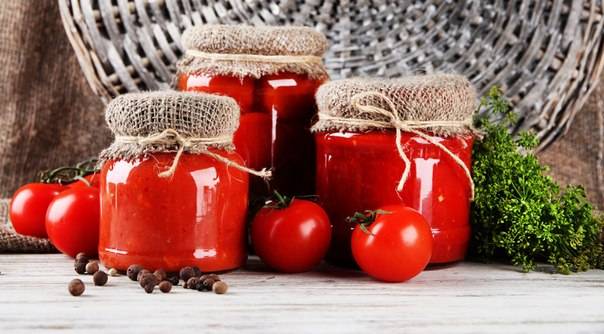 - Tomates. A pesar de que las verduras se cortarán, se debe prestar especial atención a su calidad. No debe haber manchas de putrefacción ni manchas negras en la superficie de los tomates. Si se encuentran defectos, las áreas dañadas de la superficie de la verdura deben eliminarse. La cantidad de tomates para una receta es de 6 kg.