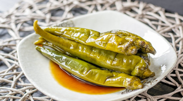 - 11 Pimientos picantes cocidos al estilo coreano con salsa de soja