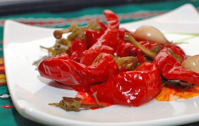 Hay muchas formas de cocinar pimientos picantes para el invierno, y todas resultan inusualmente sabrosas al final. El plato se convierte en una excelente adición a la carne de caza y de aves de corral, servido con mariscos y pescados, combina bien con varios platos de acompañamiento: pasta, arroz, papas. Se puede consumir un refrigerio caliente a diario o servir en una mesa festiva. Algunas amas de casa usan el plato como condimento, agregan patés durante la preparación del primer y segundo plato.