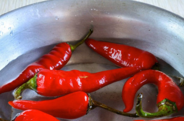 - Lave bien los pimientos amargos, póngalos en frascos limpios, presionando ligeramente hacia abajo, pero sin permitir que cambie la forma.