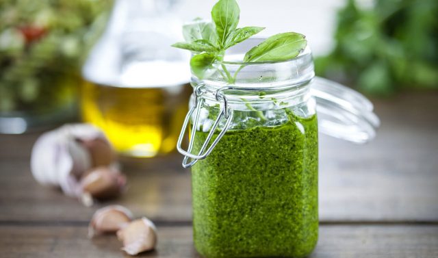 Para hacer una pasta de albahaca, solo necesita unos pocos ingredientes, cuya cantidad se puede cambiar ligeramente.