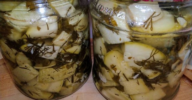 - Mezclar bien el contenido y dejar macerar durante 3 horas. Lavar los frascos con salmuera, esterilizar y esparcir la mezcla de verduras sobre ellos. Tape y esterilice durante 10 minutos en una cacerola con agua hirviendo. Enrollar herméticamente y enfriar.