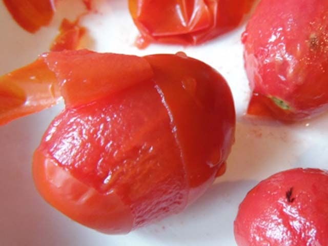 - Los tomates también se lavan y pelan bien utilizando uno de los métodos descritos anteriormente.