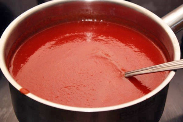- Prepare el jugo de la otra parte de los tomates: páselos por un exprimidor o picadora de carne y cocine por unos 20 minutos.