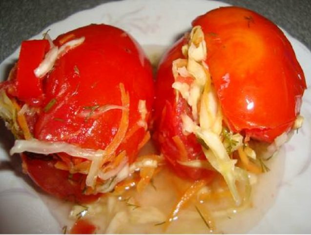 Los tomates armenios salados combinan muy bien con componentes vegetales, por ejemplo, con la col blanca.
