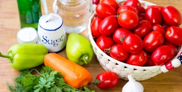 Frutas para la fabricación de tomates al estilo georgiano, es deseable seleccionar fuertes y elásticas. Los tomates grandes deberán rechazarse, ya que solo se utilizan frutas enteras para la conservación de acuerdo con estas recetas. Antes de llenar los frascos, los tomates deben clasificarse por tamaño y madurez para que el mismo frasco contenga tomates con aproximadamente las mismas características. No existen restricciones especiales con respecto a la madurez de las frutas; solo los tomates demasiado maduros no deben usarse para cosechar durante el invierno. Pero inmaduros, marrones e incluso francamente verdes pueden ser adecuados; incluso hay recetas especiales para ellos, en las que se aprecia su sabor peculiar.
