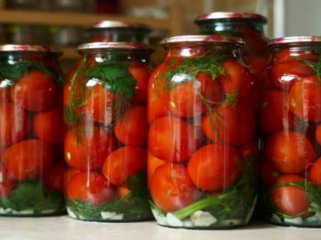 - Coloque los condimentos en frascos, coloque los tomates lavados sobre ellos en capas.