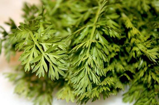 Las hojas secas de zanahoria también son aceptables, se pueden usar cuando, por alguna razón, no se dispone de hojas frescas de zanahoria. Para ello, se puede preparar en temporada: recoger, lavar y secar. Al enlatar, las ramitas secas deben tomarse 2 veces más que las frescas.