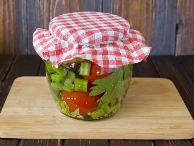Una receta sencilla de tomates en escabeche con apio para el invierno.