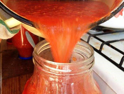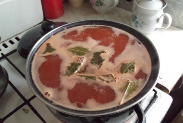 - El jugo se cocina a partir de tomates blandos o azúcar, se agregan sal, especias, vinagre al producto terminado y se hierven durante 8-10 minutos.
