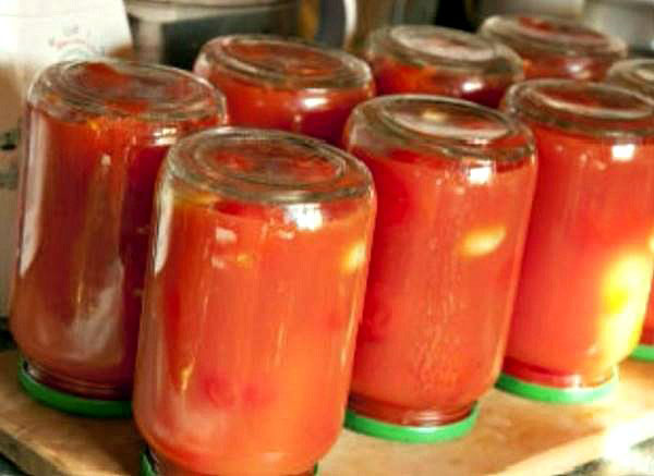De lo contrario, el proceso de hacer tomates en su propio jugo no es diferente del estándar descrito anteriormente.
