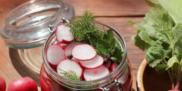 Agregar rábanos a las clásicas verduras en escabeche lo convierte en un surtido perfecto, del cual todos pueden elegir su ingrediente favorito durante un gran festín. La perfecta armonía de sabores da como resultado un excelente plato que será apreciado por todos los miembros de la familia en invierno. Para cocinar necesitarás: