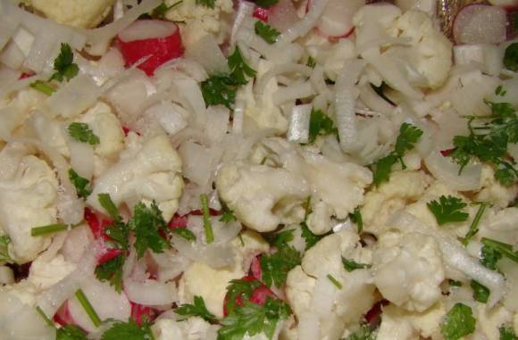 - 2.3 Ensalada de rábano de invierno con coliflor y ajo