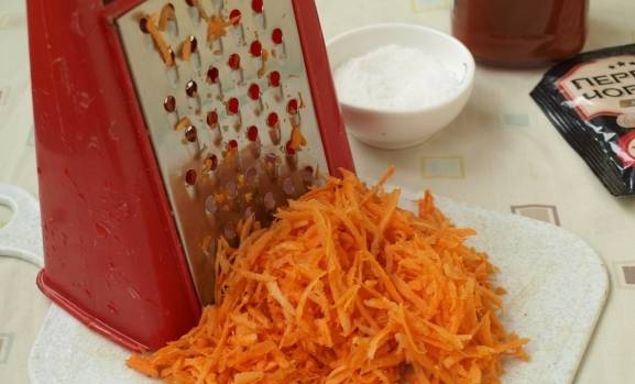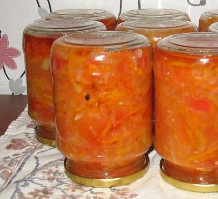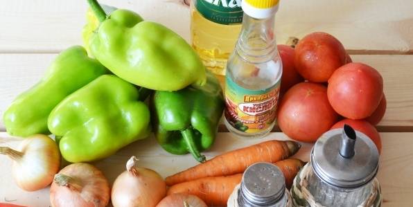 - Como siempre, empezamos a trabajar con la elaboración de productos. Lavamos bien las verduras, ya que incluso la más mínima contaminación que no haya sido lavada de la superficie hará que la cosecha sea inservible para el invierno. En los tomates, corte el lugar donde se adjunta el tallo. Retire la cola, las particiones y las semillas de los pimientos. Limpiamos zanahoria y cebollas. Cortamos los tomates y los pimientos en rodajas, como exige la receta, para picar las zanahorias, usamos un rallador con celdillas grandes. Corta la cebolla en cubos pequeños o medias anillas.