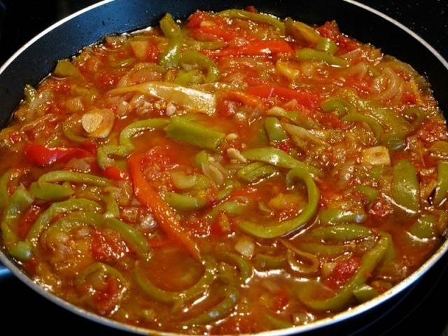 Lecho de pimientos verdes con tomate