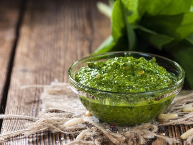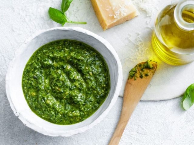 Una salsa de albahaca fragante y deliciosa ganará los corazones de más de un gourmet; al servirla, definitivamente todos le prestarán atención. Ideal para ensaladas, pastas y otros platos.