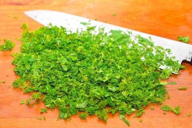 - El perejil se puede cortar en trozos grandes o poner en ramas enteras, 7 ramas por tarro de 1 litro.