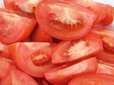 Elegir tomates medianos y densos. - cortar la cebolla en aros finos;
