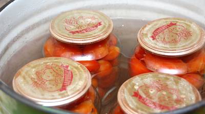 - Los cubrimos con tapas esterilizadas. Para que los alimentos enlatados se almacenen mejor, deben esterilizarse colocando el frasco en una olla con agua tibia y llevándolo a ebullición. Para latas de 1 litro, el tiempo de esterilización a bajo punto de ebullición es de un cuarto de hora.
