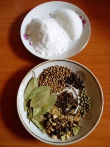 - prepare una marinada con agua, sal y especias con la adición de vinagre, hirviendo todo junto;