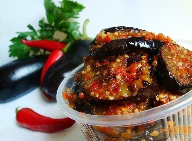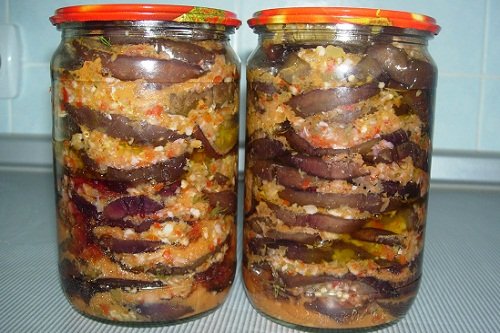 El método original de cocinar berenjenas con nueces para el invierno consiste en encurtirlas. El aperitivo resulta jugoso, rico y definitivamente atraerá a los amantes del picante.