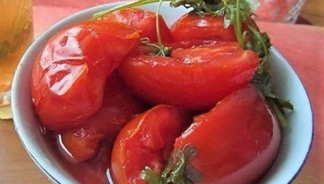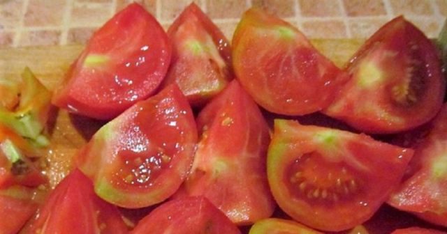 Cada ama de casa que usa tomates de su huerto sabe cuántas frutas maduran, las cuales tienen ciertos defectos de apariencia. Ocurre que los frutos son picados levemente por algún tipo de insecto o hay otras heridas leves en la piel. Dichos tomates ya no son adecuados para la cosecha durante el invierno en su conjunto. Pero se pueden cortar en mitades o en rodajas, eliminando así todas las áreas dañadas y utilizadas para preparar deliciosos alimentos enlatados para el invierno.