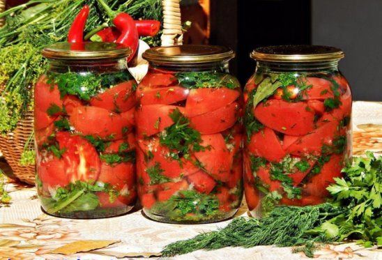 Tomates en rodajas sin esterilizar: una receta con hierbas y pimientos picantes