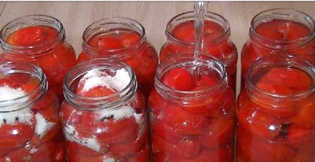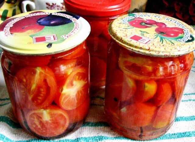 Tradicionalmente, los tomates cortados se conservan principalmente mediante esterilización. Este proceso ayuda a que las cuñas conserven su forma y sabor. Pero en los últimos años también han aparecido recetas para enlatar tomates picados sin esterilizar. Debe entenderse que para estas recetas solo se deben utilizar variedades con la pulpa más densa, como Auria, Dedos de Damas, Tío Stepa y otras similares.