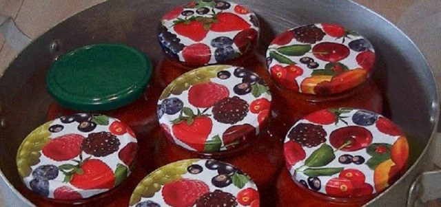 - Los platos con la pieza de trabajo se colocan para esterilizarlos durante 10-15 minutos en agua caliente, después de lo cual se enrollan instantáneamente.