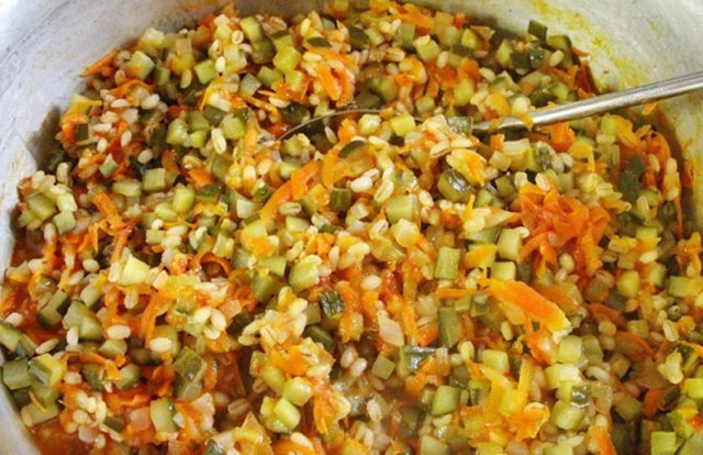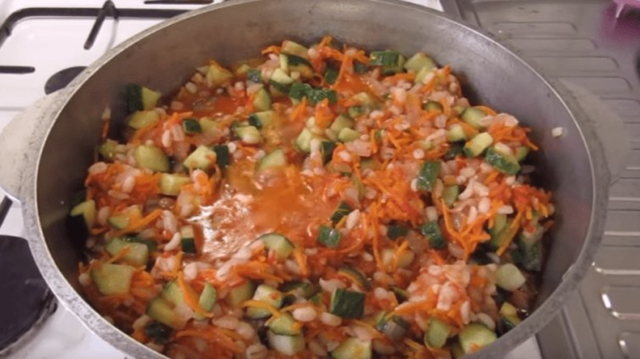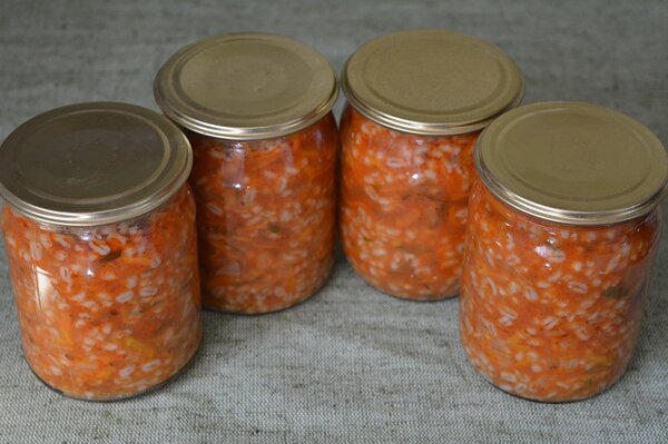 - 5 Cocinar pepinillos para el invierno con cebada y pasta de tomate.