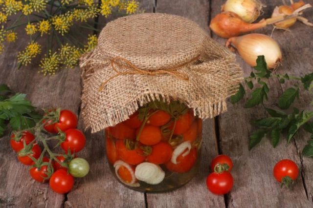Para la preparación de tomates en un recipiente de un litro, el tamaño de la fruta es importante. Es mejor usar tomates cherry o tomates que pesen hasta 100 g. Cocinar tomates de frutos pequeños de acuerdo con las recetas generales debe hacerse con cuidado, tal vez su sabor resulte demasiado saturado. Las amas de casa experimentadas pueden ajustar fácilmente la cantidad de sal y ácido. Los principiantes deben buscar una receta no esterilizada para tomates cherry.