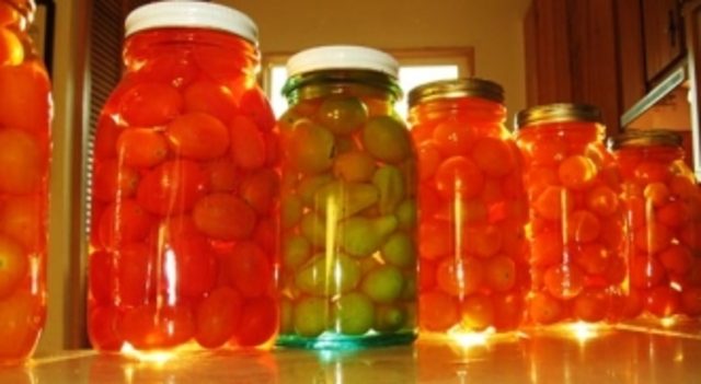 - En frascos estériles, se colocan los tomates, lavados y pinchados en el tallo.