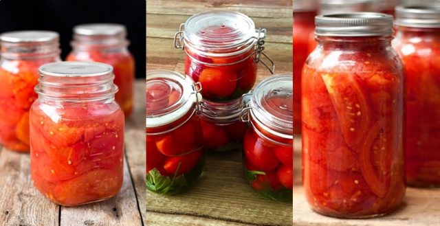 Todas las recetas para cosechar tomates sin esterilización prevén el tratamiento térmico de los contenedores. Este es un requisito previo, de lo contrario, el producto se deteriorará y aparecerá moho en la superficie o la tapa se romperá.