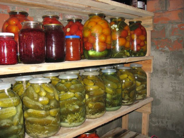 Los espacios en blanco de tomate para el invierno sin esterilización deben almacenarse en un lugar fresco, protegido del sol. Si hay bodega o sótano, no hay problema. Pero en un apartamento de la ciudad en verano, la temperatura es alta y el refrigerador no está diseñado para almacenar latas de tomates. Se pueden colocar en el vestíbulo o en el piso de la despensa, donde la temperatura es un poco más baja.