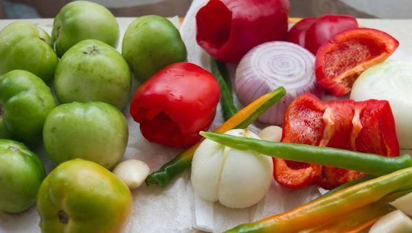 Se cosechan tomates verdes, pimientos morrones, pepinos, zanahorias y cebollas.