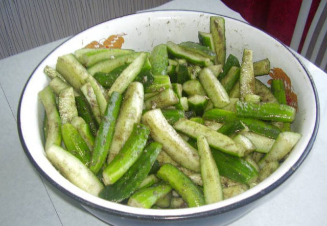 - Elija pepinos de tamaño mediano. Lavar y cortar en tiras.