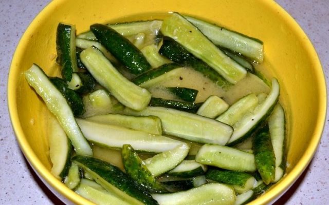 - Combine todos los ingredientes con los pepinos, mezcle. Espere hasta que se libere una cantidad suficiente de jugo.