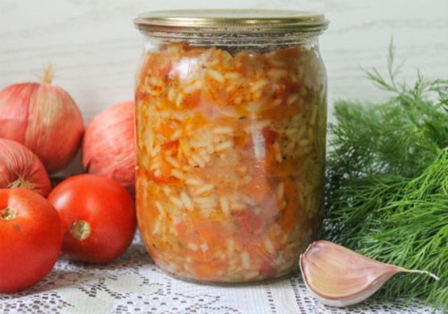 La merienda de caballa para el invierno con la adición de arroz, preparada según esta receta, resulta muy nutritiva y se puede utilizar como plato aparte.