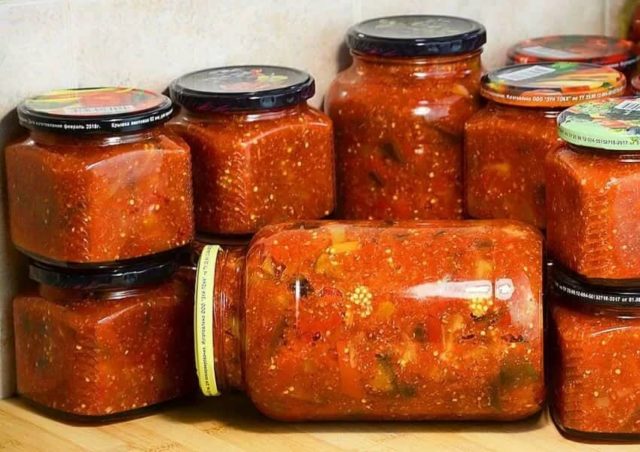 - Preparación de ensalada perezosa. Las berenjenas listas se colocan en frascos de vidrio preesterilizados. Luego se cubren con tapas, se espera hasta que se enfríen y se guardan en un lugar fresco y oscuro.