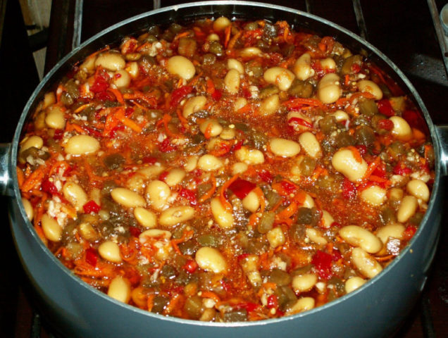 Con la ayuda de frijoles, puede hacer que la berenjena Manjo para el invierno sea más nutritiva y rica en calorías. Tal preparación para el invierno será una excelente adición a la carne, el pescado, varios platos de acompañamiento y otras ensaladas.