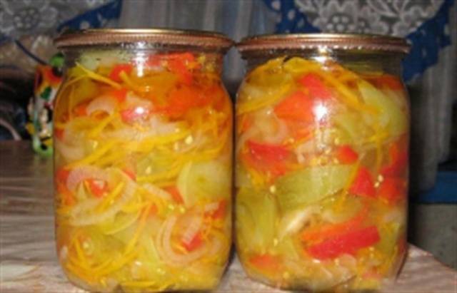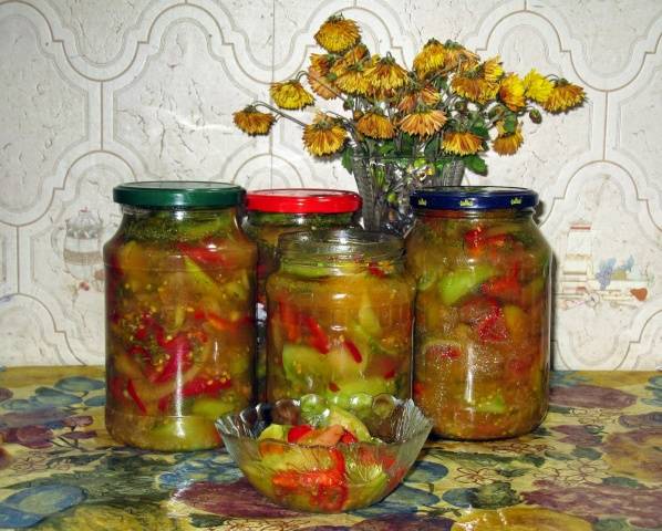 Uno de los ingredientes principales de las ensaladas de invierno es el pimiento morrón. Su uso confiere a la botana un sabor dulzón. Las ensaladas se preparan a partir de tomates y pimientos verdes hirviendo o encurtiendo verduras. El tratamiento térmico puede aumentar el período de almacenamiento de las piezas de trabajo, al igual que la adición de vinagre.