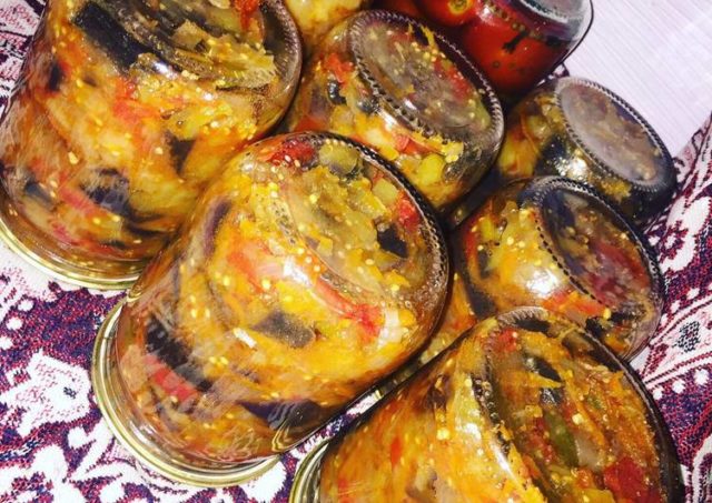 La ensalada también se llama "Las tres berenjenas", para el invierno se prepara a partir de verduras tomadas en cantidades iguales. Una porción es un tarro de un litro. Por supuesto, casi nadie hará tan poco, pero el nombre refleja la proporción estándar.