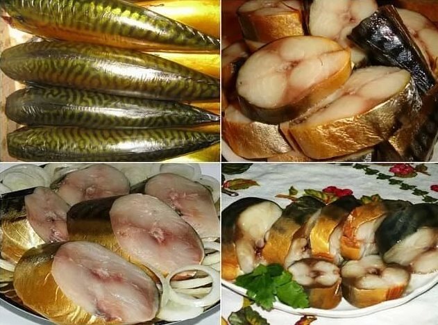 La forma más popular de servir y consumir un manjar es combinarlo con otros ingredientes en platos para servir. En una gran cantidad de fotos, la caballa ahumada en frío combina bien con el pescado rojo y azul. Además, pueden actuar otros mariscos: camarones o mejillones, así como una variedad de encurtidos: aceitunas, alcaparras o champiñones.