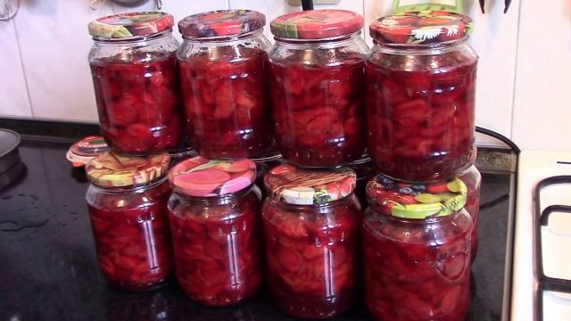 - Se colocan en frascos, se espolvorean uniformemente con azúcar y se esterilizan durante 15-30 minutos, según el volumen.