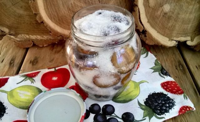 - Esta vez, las ciruelas no se espolvorean frescas en los frascos, sino que primero se hierven en una cacerola junto con azúcar hasta que salga jugo de ellas.