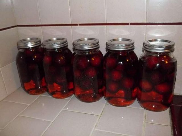 Asegúrese de refrigerarlo en un lugar cálido y luego llevarlo a un lugar de almacenamiento permanente. En esta foto se muestra cómo se ven las ciruelas en almíbar para el invierno.