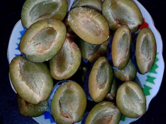 - Lavar las ciruelas, cortarlas en mitades. Deseche los huesos.