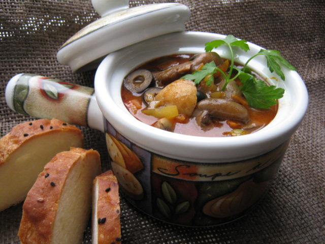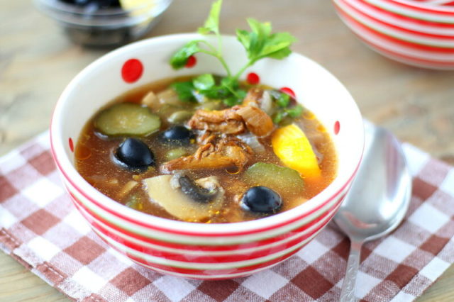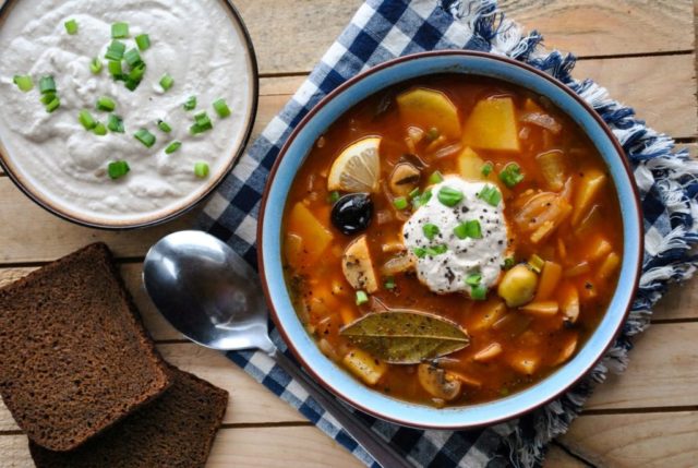 La solyanka con champiñones con leche debe distinguirse del primer plato caliente. En consistencia, parece más un guiso. Los ingredientes se guisan con verduras en un poco de agua hasta que el plato sea verdaderamente aromático y satisfactorio.