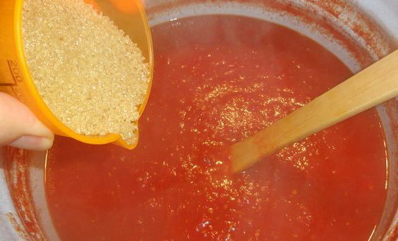 En la parte de recetas para hacer salsa, primero debe obtener jugo de tomate o tomar uno ya hecho. En otros, los tomates simplemente se trituran de cualquier manera y la cáscara con semillas se deja en la masa vegetal para hervir más.