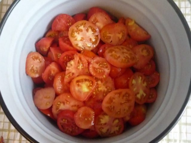 - Los tomates se cortan en trozos de cualquier forma y tamaño conveniente.